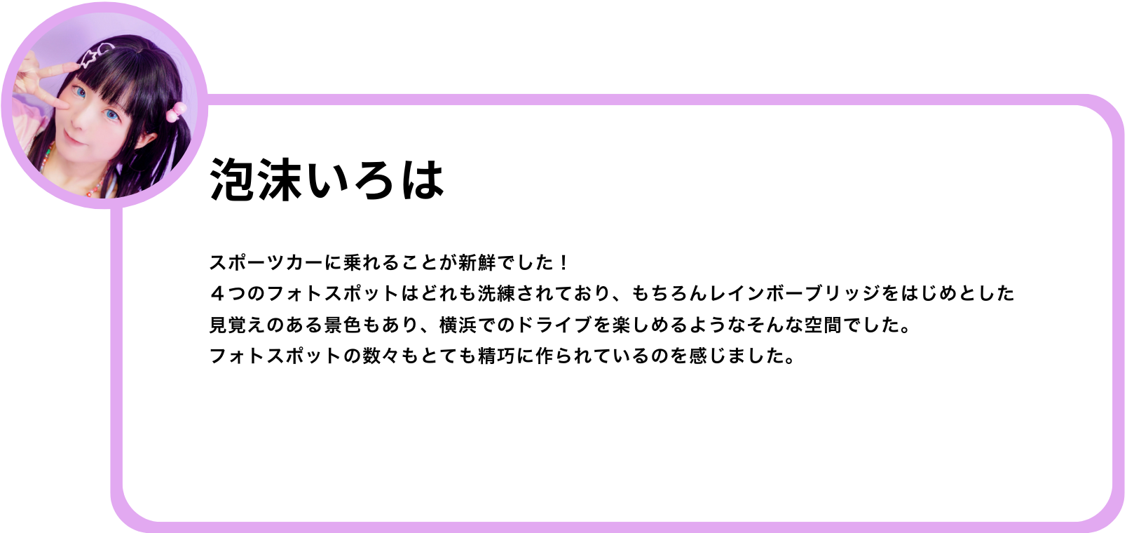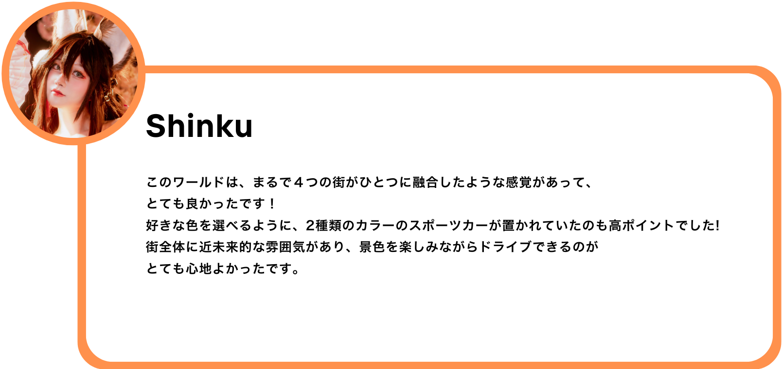 スポーツカーでフォトスポットを巡る設計は、プレイヤーに発見と移動のワクワク感を与え、