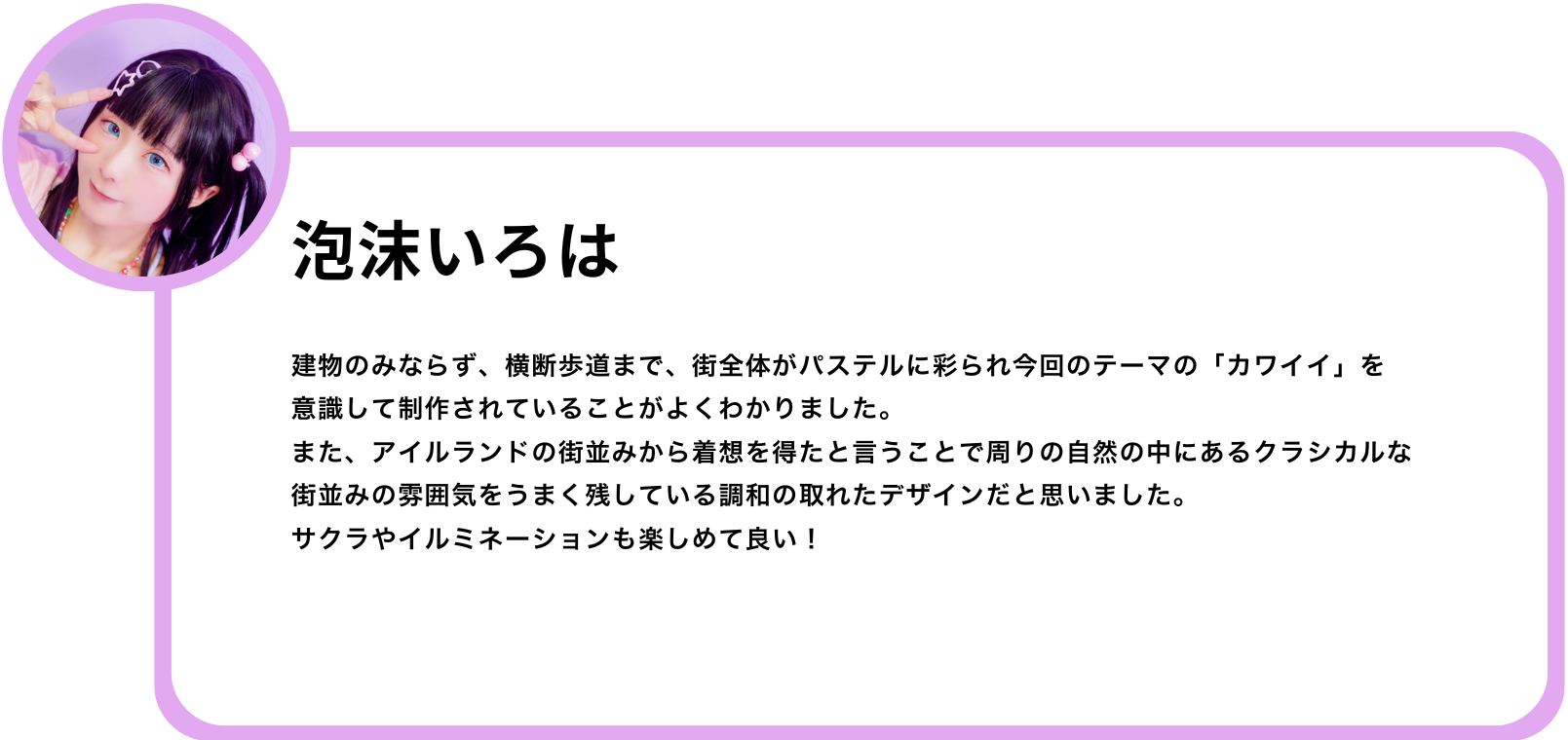 コンテストのテーマを的確に捉え、実在の街を舞台に「かわいい」要素を丁寧に表現していました。